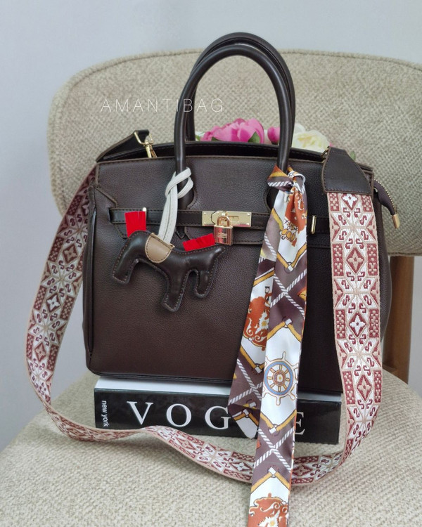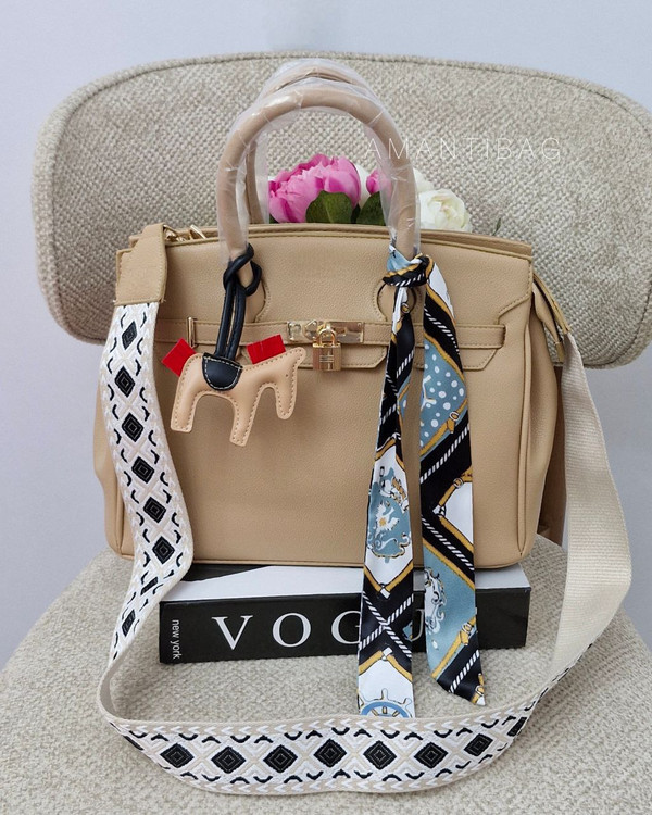 کیف زنانه هرمس شیک و خاص برای استایلهای روزمره و رسمی ✨ همراه با اسکارف ، چارم بگ و بند وارداتی